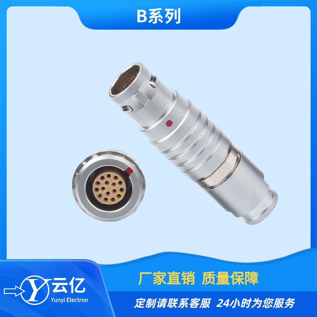 B系列是一款符合人体工程学要求、模块化的、坚固耐用并可靠的圆形 推拉自锁连接器,其采用弹性自锁装置,可用于需要快速安全插拔自锁的应用。该系列产品是试验、测量、检测仪表、医疗设备、科研和音频/视频应用的理想选择。模块化配置主要包括了各类的高密度多芯或者混装的针芯配置。针芯类型可以是焊接针芯、压接针芯、PCB直式针芯或弯角针芯,针芯的种类 也包括了光纤、同轴、热电偶、气路、射流以及高压信号,多定位销系统能够实现较高接触密度,从而防止混插。